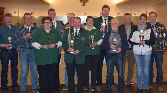 Die Einzelpokale gingen an folgende Teilnehmer: Damen:Stephanie Mertens (82,6 Ringe), Anne Stricker (81,3); Schützen: Johannes Ameling (81,5), Michael Mertens (80,5); Altersklasse: Stefan Schluchter (82,8), Herbert Kastner (81,8); Pistole: Matthias Sall (27), Werner Gerweler (26).